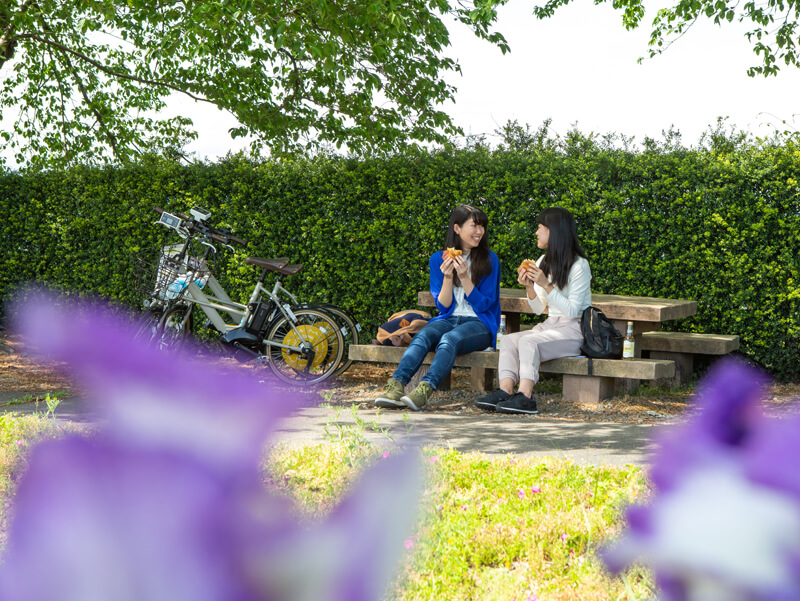 サイクリングでおなかがすいたら、お外でランチもいいかも。天気がいい日は公園のベンチで風を感じて、のんびり景色を楽しんで。のんびり食べれるランチスポットを探すのも楽しいです。
