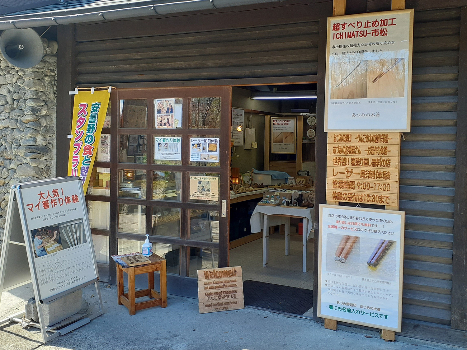 安曇野でしか買えない品!ここでしかできない体験!これが最高のおもてなしと思い日々働いています。地元の木材を使った手作りのお土産をいかがでしょうか。