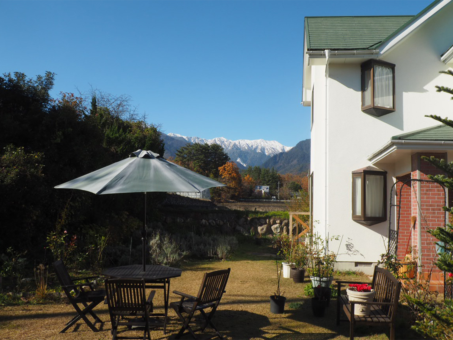 山々を望む小さなハーブのお庭がある自宅サロンです。自然素材のみのフェイシャル・ボディ、玄武岩を使ったラ・ストーンなど。一日のご予約を限定し心を込めて行っています。