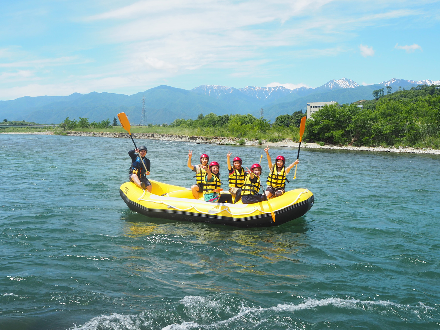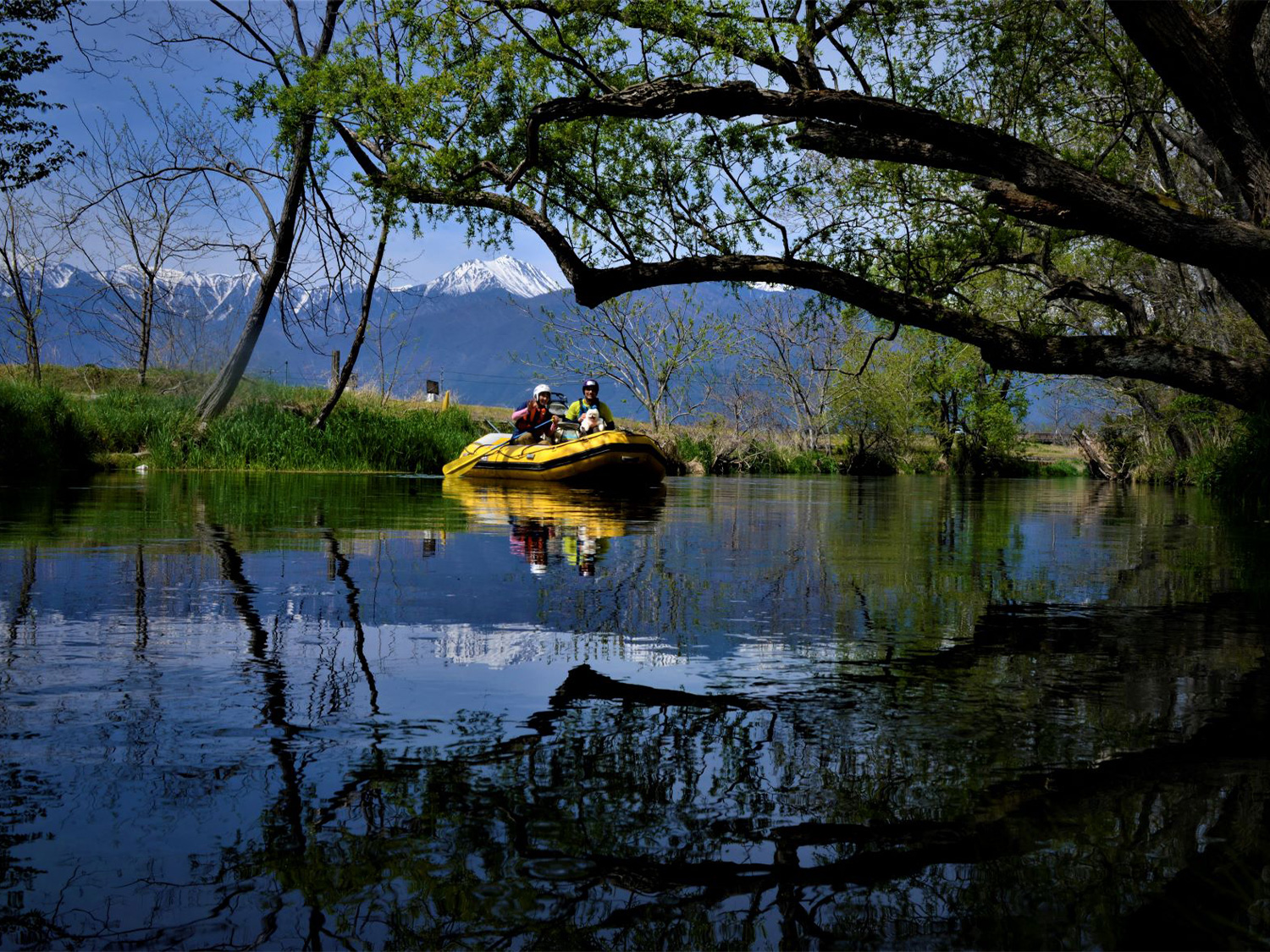 安曇野の清流を、景色を眺めながらのんびり川下り。激しいところや危険なところはありませんので1歳からご年配まで、安心して参加できます。