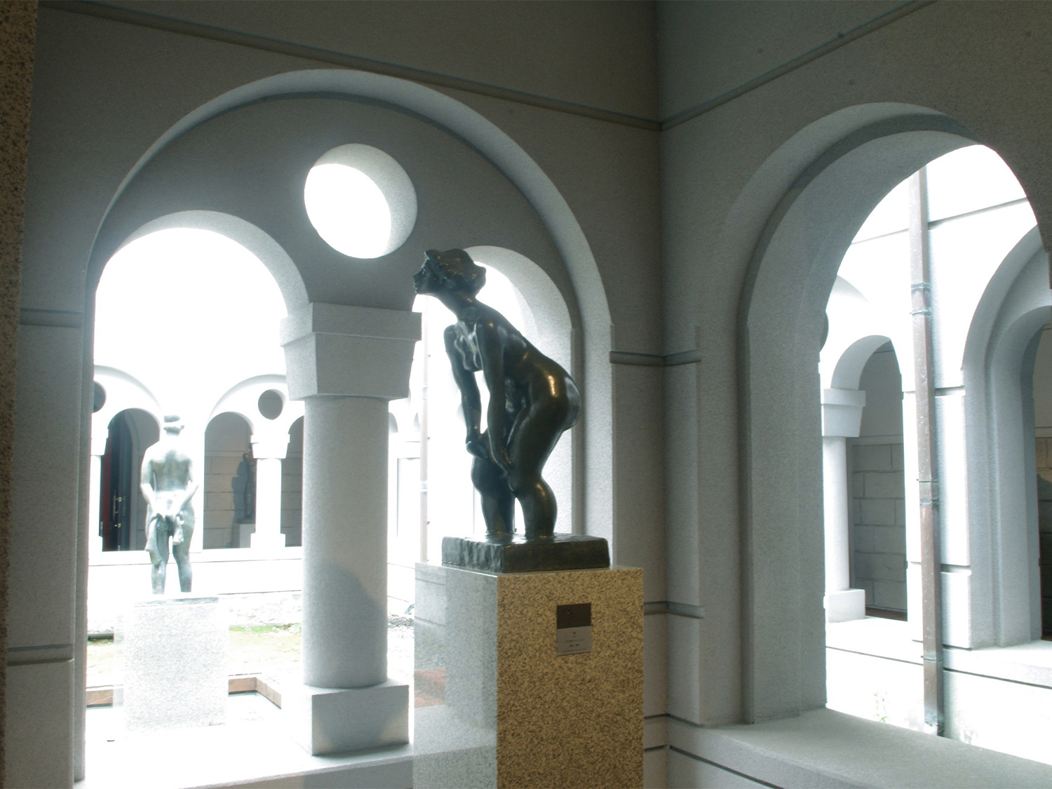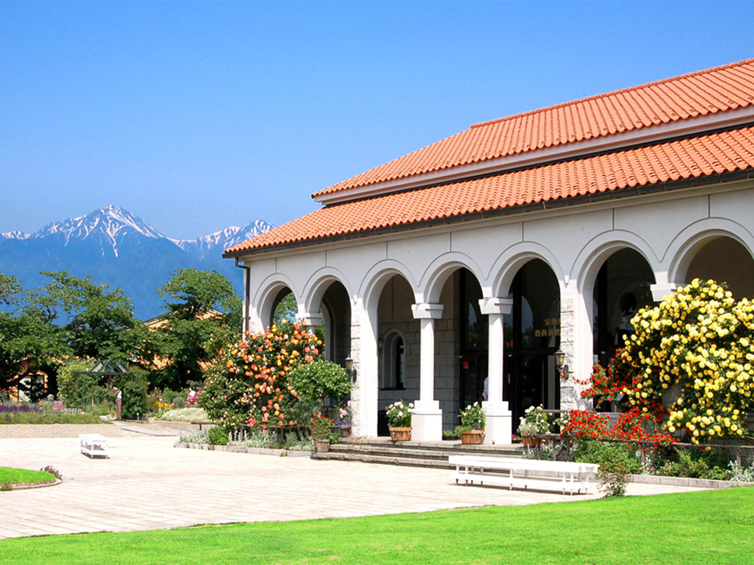 日本近代彫刻家を代表するひとり「高田博厚」の彫刻や森鴎外ゆかりの画家「宮芳平」の絵画、信州ゆかりの作家の作品を常設展示。 約500種1000本の四季咲きのバラ園も必見。