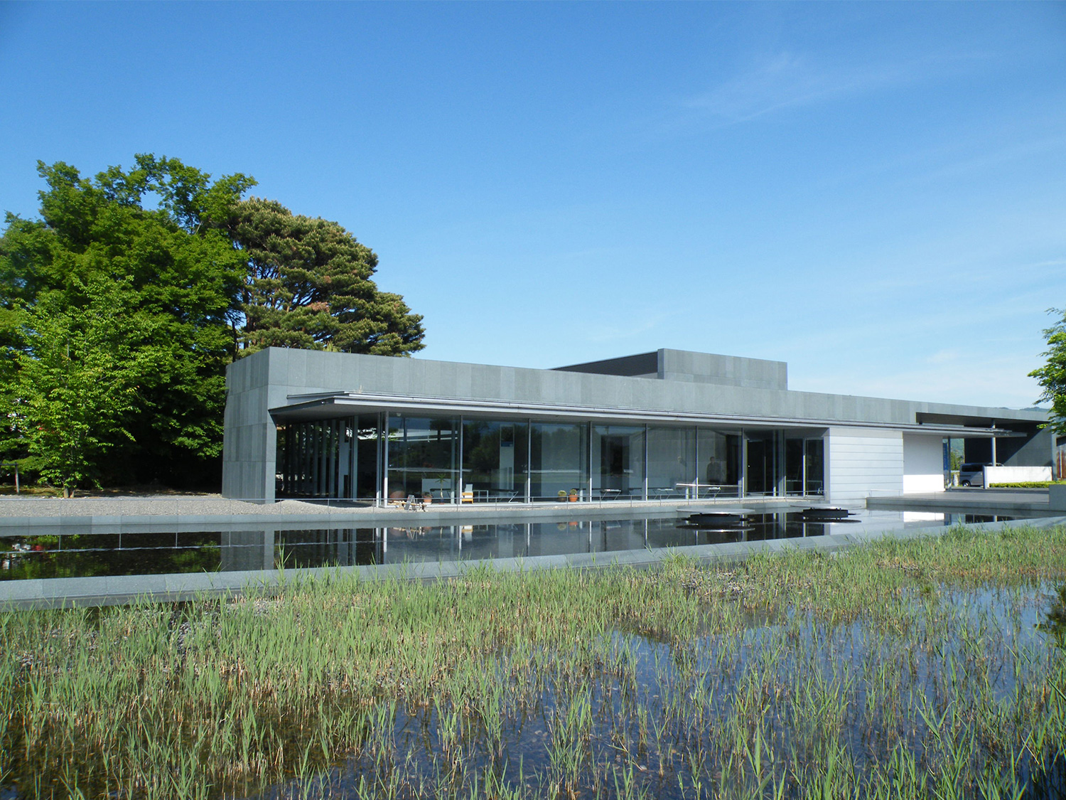 息を飲むほどに美しい北アルプスの大パノラマを一望できる高台に立つ美術館です。安曇野の風景画を多く収蔵しており、企画展も年間5~7本開催しています