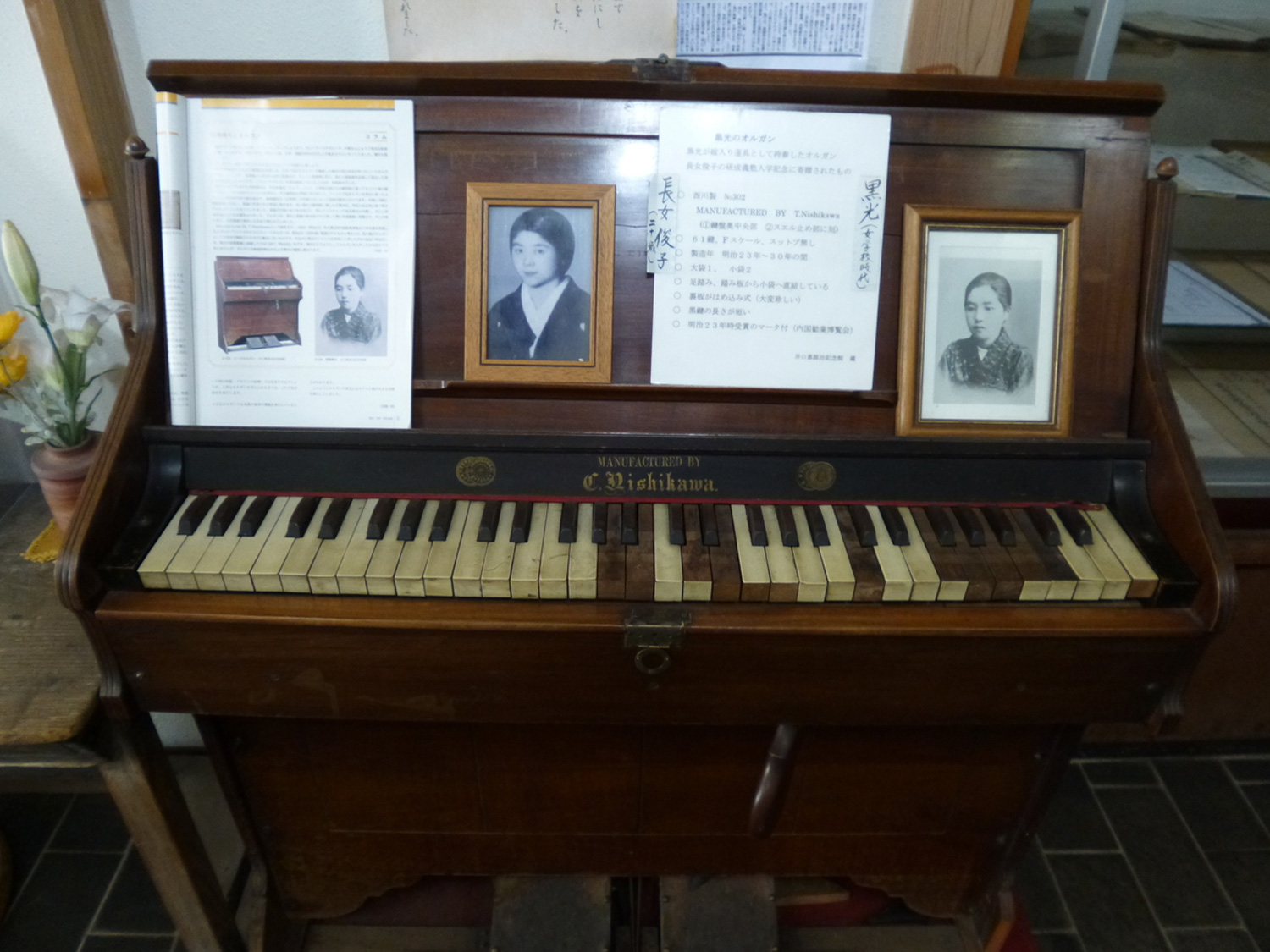 研成義塾を創設し、明治から昭和に教育に励んだ井口喜源治の書籍、写真、書簡、相馬黒光寄贈のオルガン、聖書の復刻版等を展示しています。