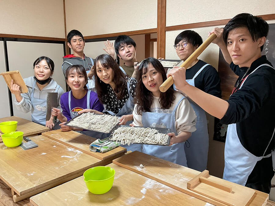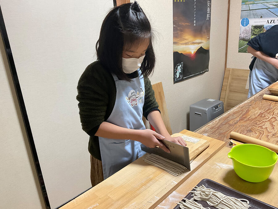 安曇野の澄んだ空気の中で北アルプスの伏流水を使ったそば打ち体験をやってみませんか?自分で打ったそばは格別!絶品のそばを召し上がれ♪安曇野産の天然わさびもお付けします。