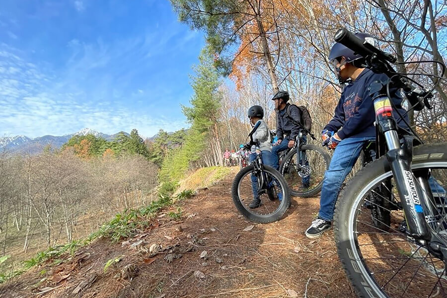 安曇野市の体育施設。自然豊かな森を人の手で切り拓き、マウンテンバイクで自由に楽しめる空間を作りました。話題のE-MTBツアーは女性にも人気。女性講師もおります!