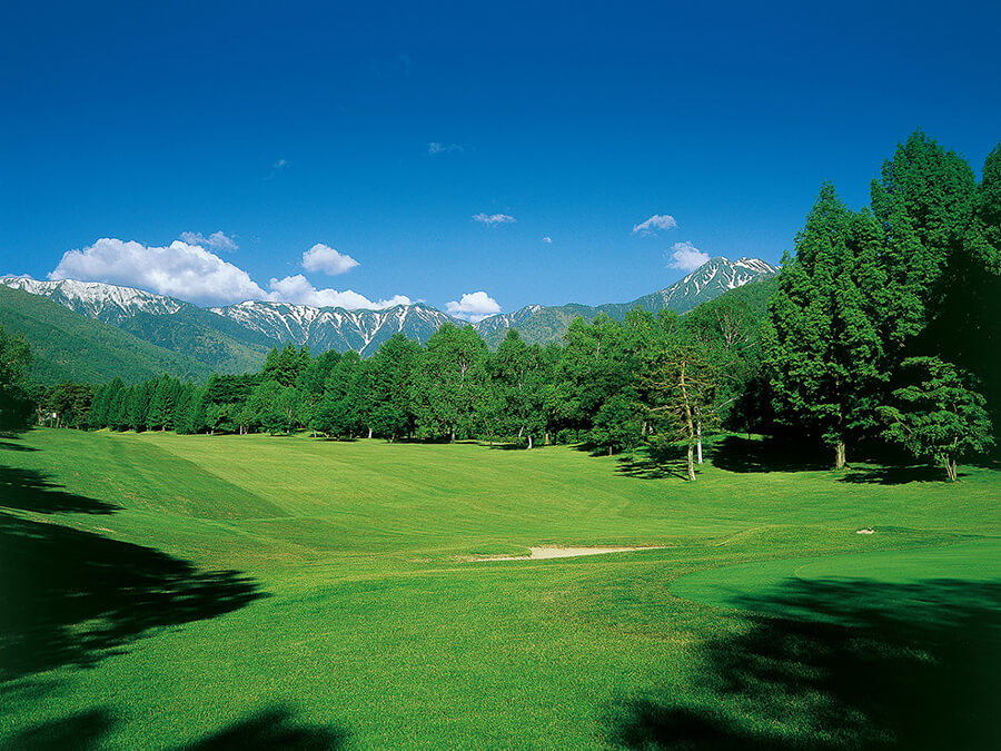 北アルプスの麓、東西に緩やかに広がる高原に全長7022ヤード、パー72の戦略性に富んだ本格的チャンピオンコース。中房温泉から引湯している天然温泉も魅力のひとつ。